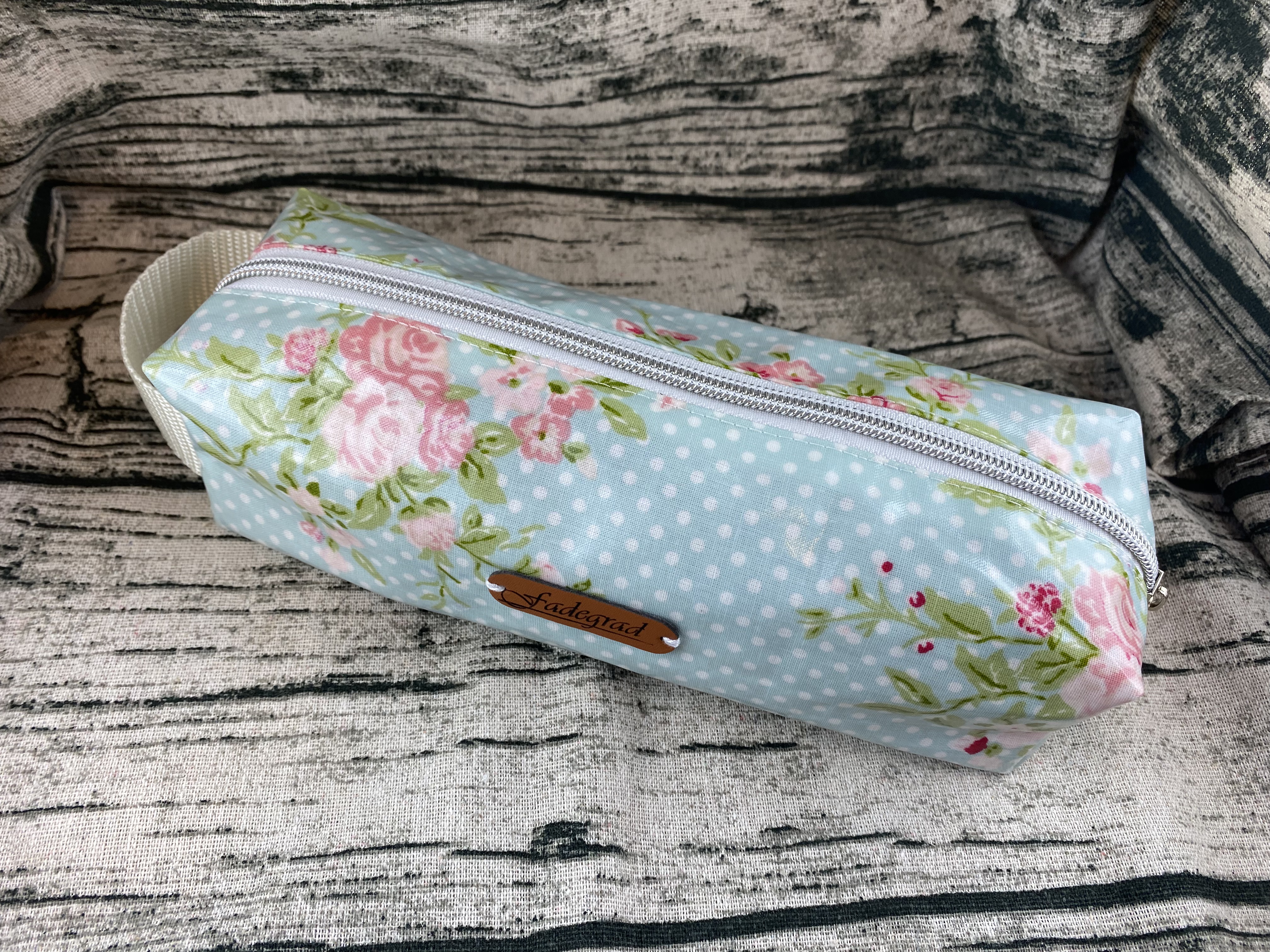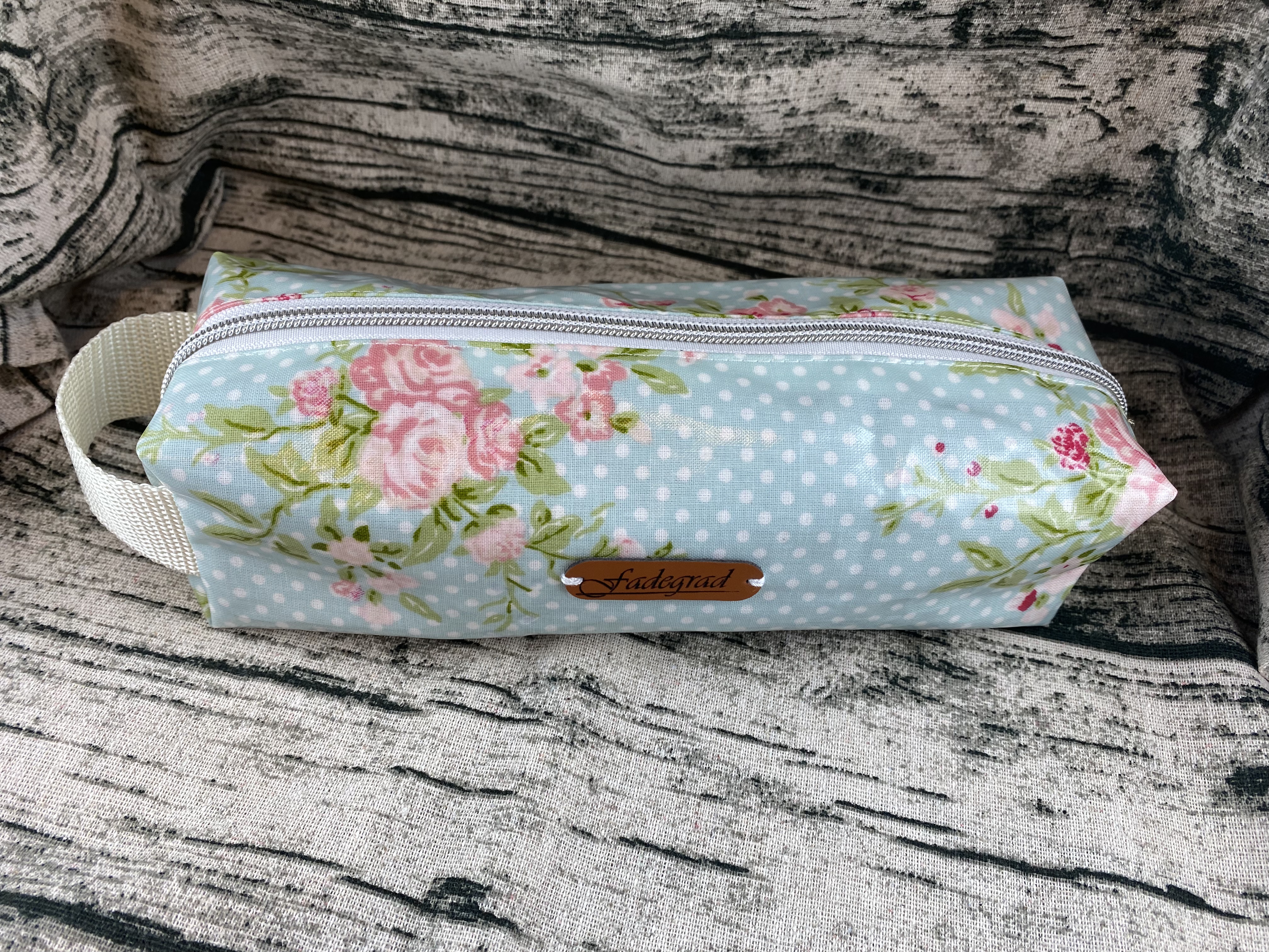 Schickes Mäppchen aus hochwertigem Wachstuch genäht , im inneren ist die Tasche mit beschichtetem Baumwollstoff ausgekleidet